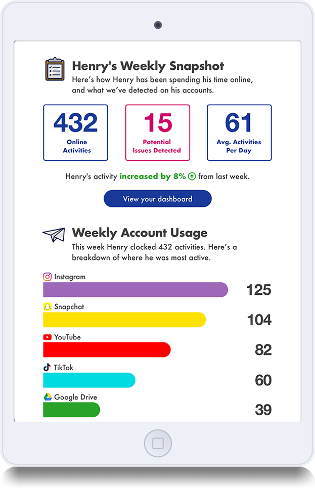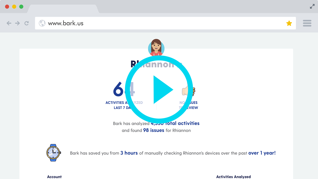 Bark saves you from manually monitoring your child's activities, respecting your time and your child's privacy by only surfacing potential concerns.
