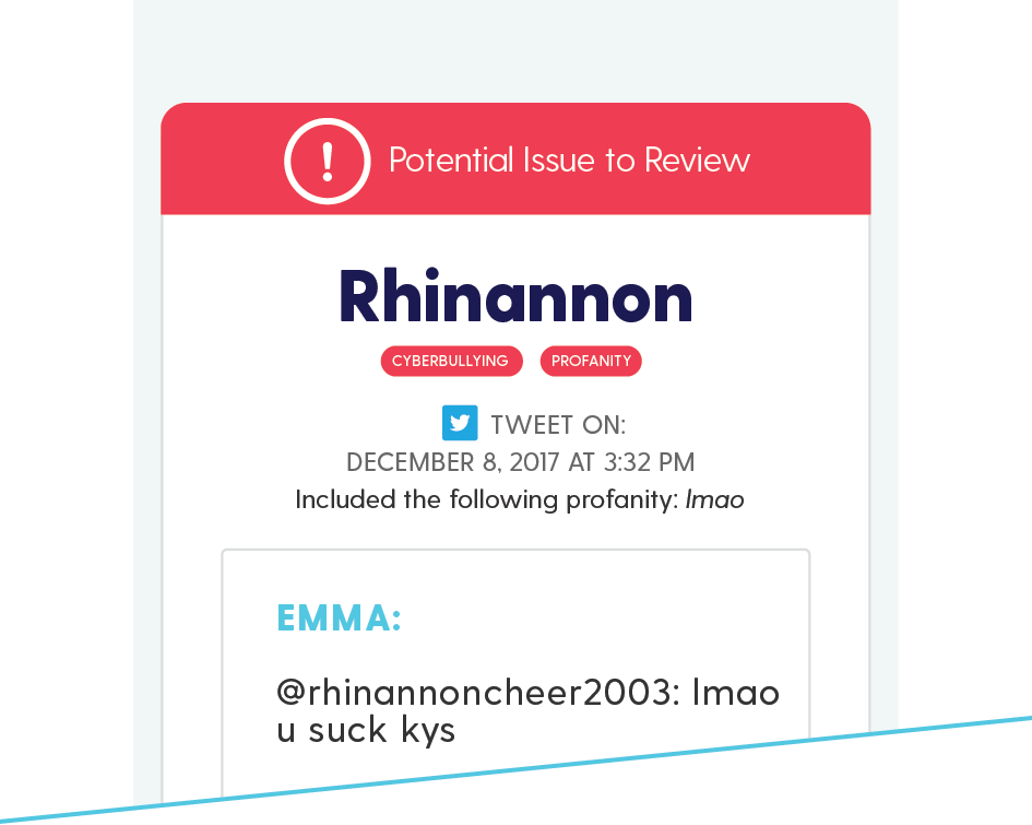 “We installed this today on our daughter’s phone and were immediately glad we did. It notified us of sexual content and even cyberbullying. THANK YOU!! I feel a bit better about my daughter’s safety knowing her actions online are completely monitored. We talk to her regularly about the dangers of online activity but this is another, BIG, level of comfort for me.”