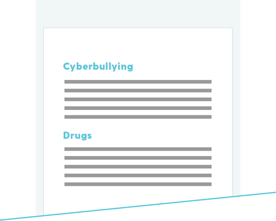 Bark looks for activity that may indicate online predators, adult content, sexting, cyberbullying, drug use, suicidal thoughts, and more.
